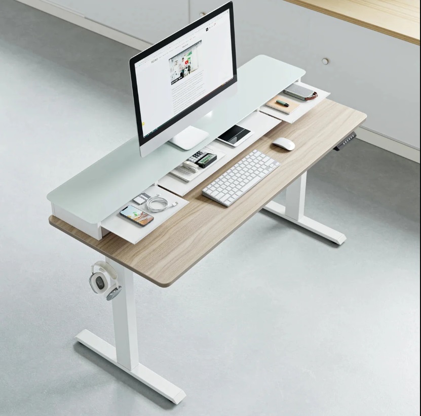 If you prefer a modern, minimalist design, a glass standing desk might be the ideal choice. Fezibo’s glass standing desk features a clean, transparent surface that creates a sleek and airy look in your office. The glass surface is easy to clean, and the minimalist design ensures that your workspace remains uncluttered and stylish. It’s a great option for those who appreciate modern design and want to create an open, contemporary feel in their office.